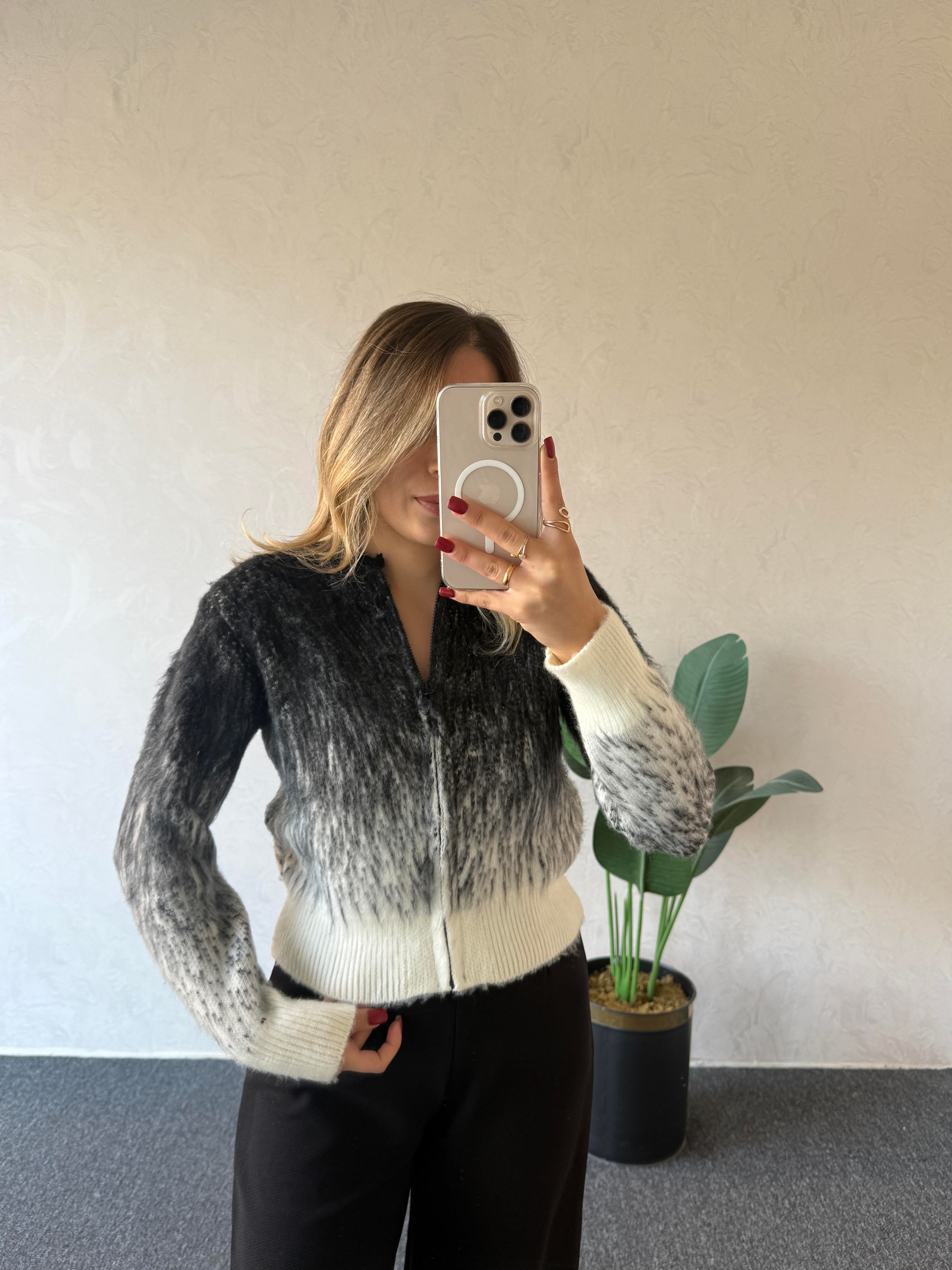 Çift Renk Yumoş Hırka Siyah Beyaz - 1075