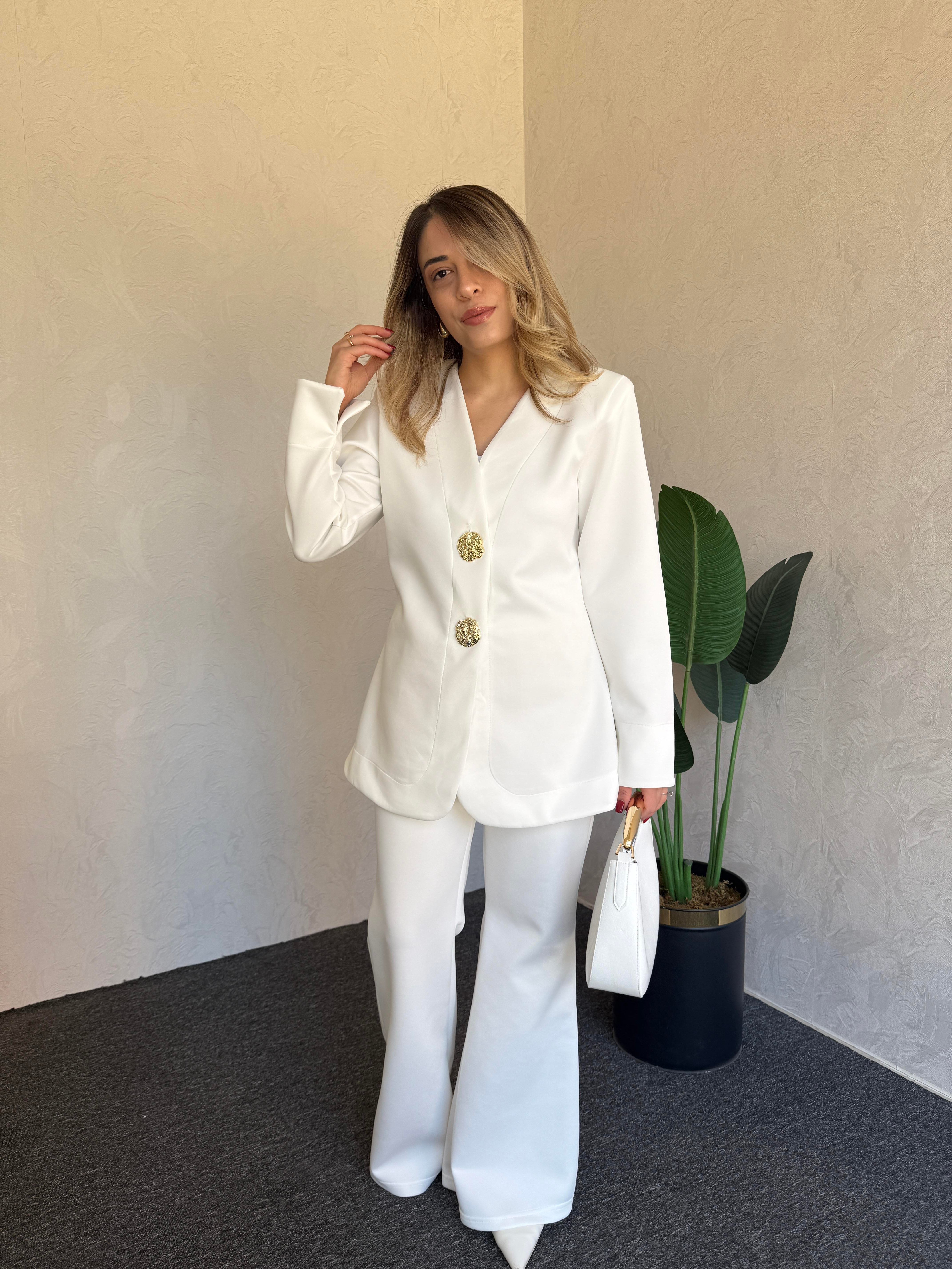 Gold Düğmeli Scuba Takım Beyaz - 1072