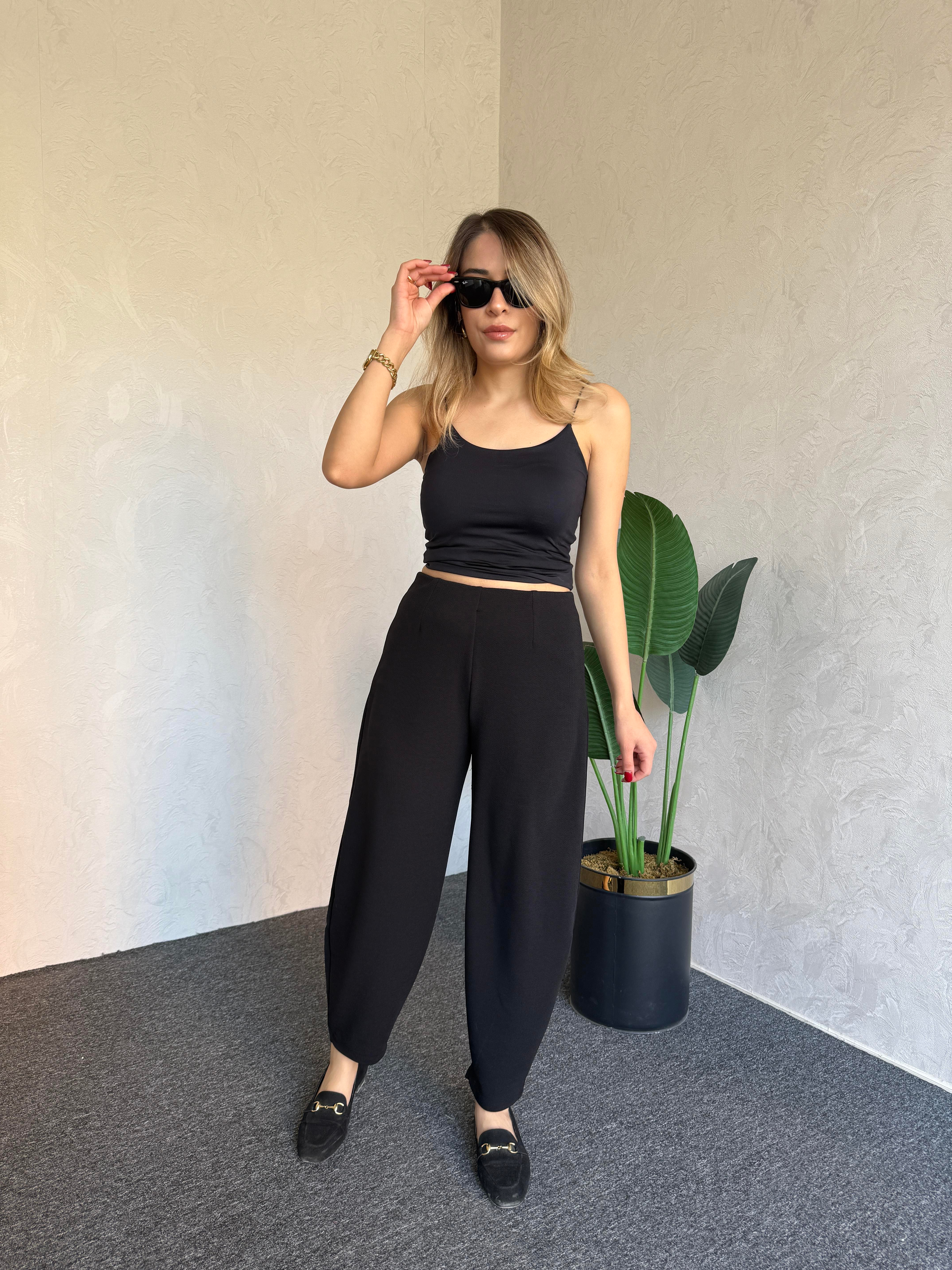 Krep Şalvar Pantolon Siyah - 1070