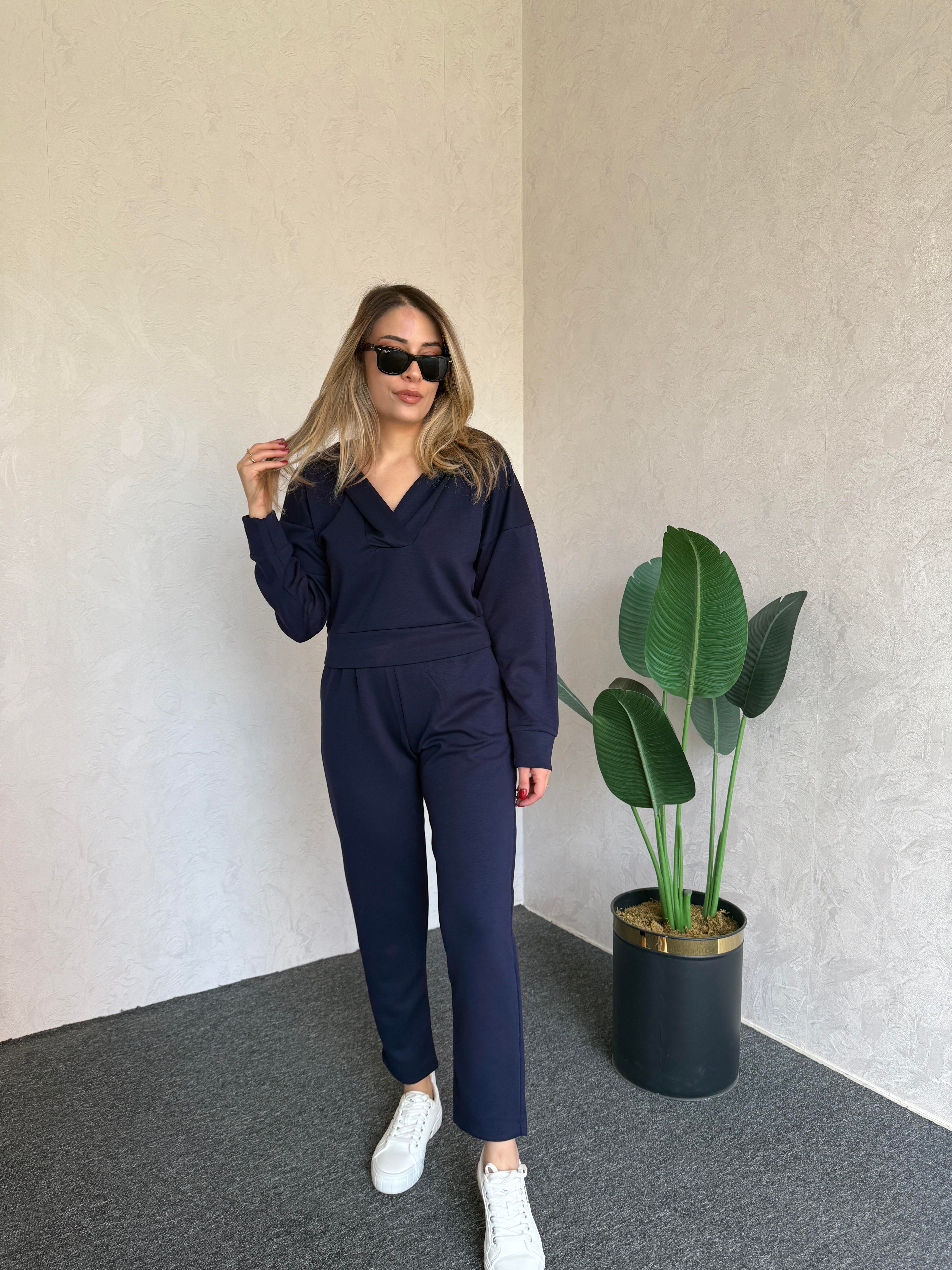 Kruvaze Modal Eşofman Takım Lacivert - 1069