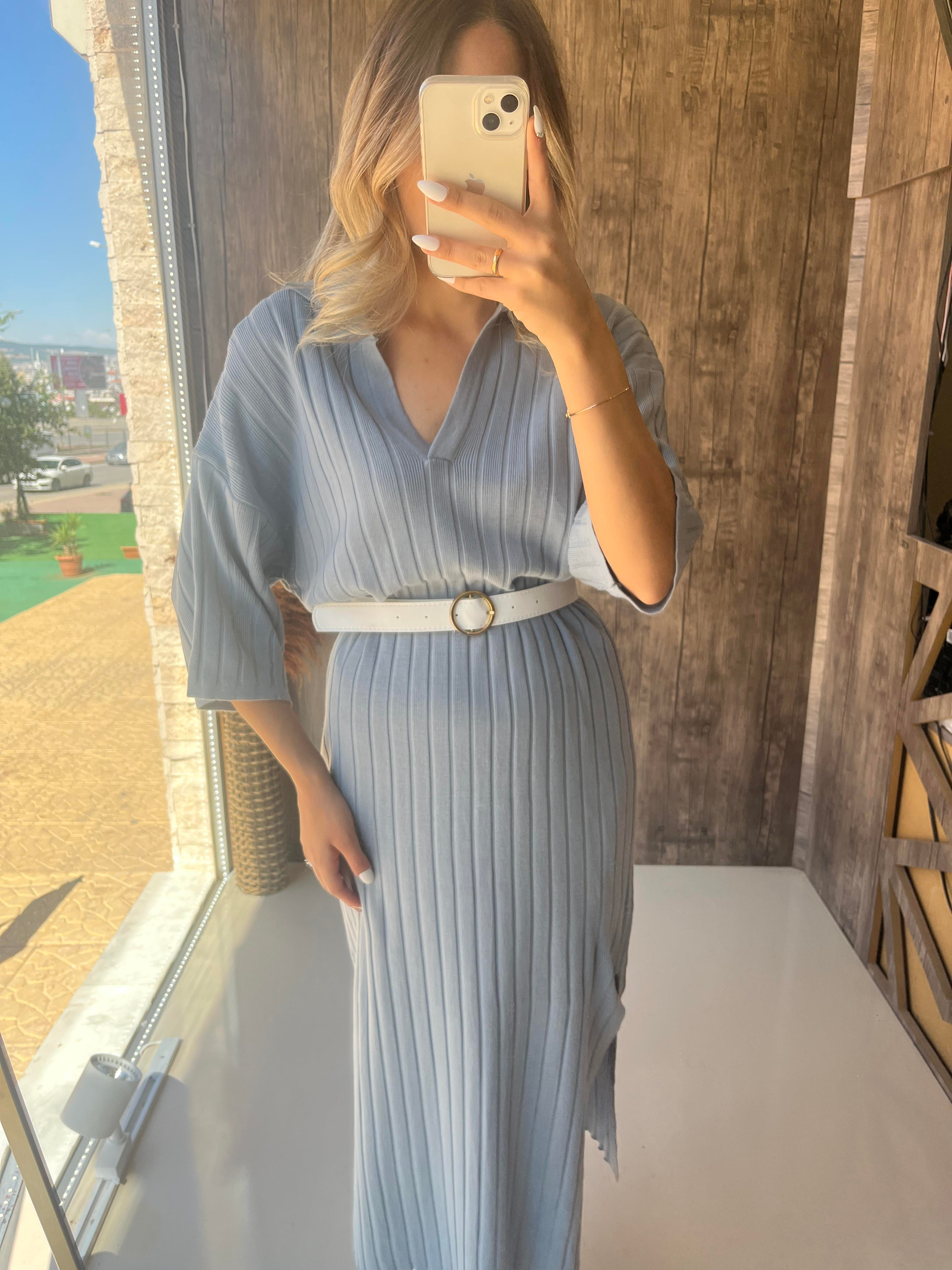 Mevsimlik Basic Triko Elbise Somon - 1064